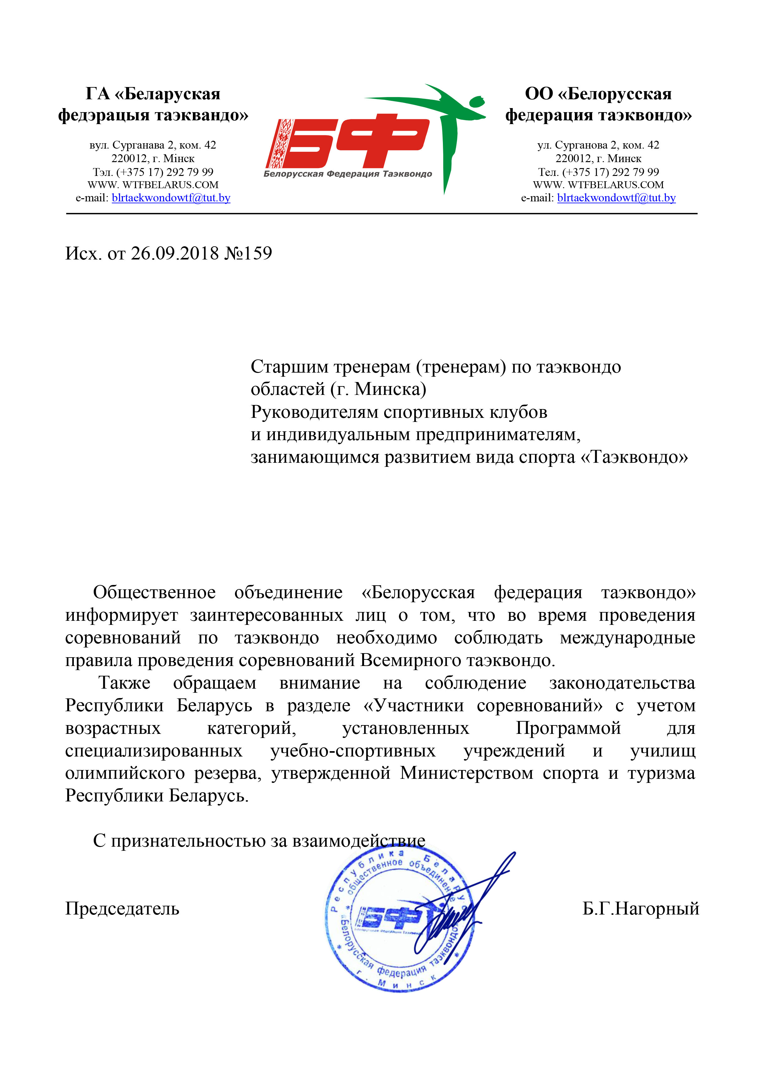 Общественное объединение «Белорусская федерация таэквондо» информирует заинтересованных лиц о том, что во время проведения соревнований по таэквондо необходимо соблюдать международные правила проведения соревнований Всемирного таэквондо.